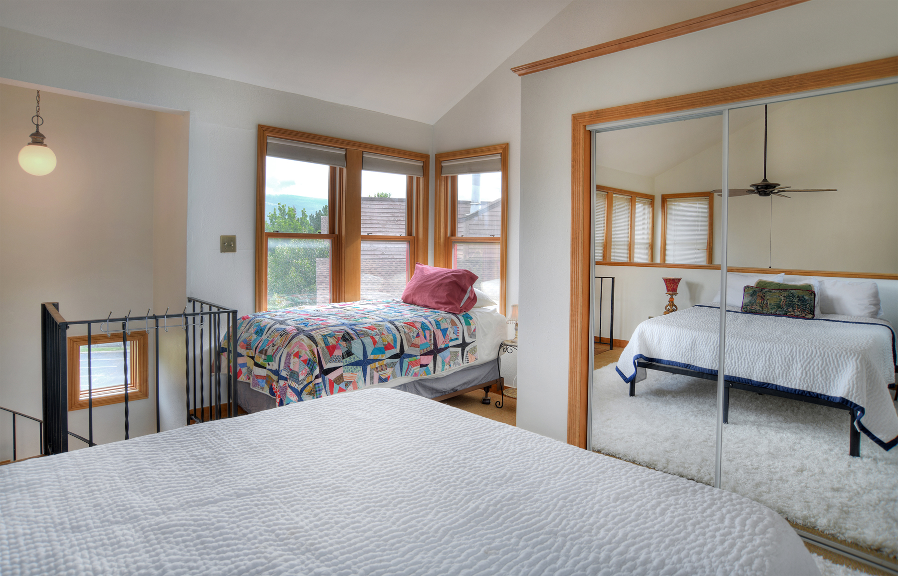 • Loft Bedroom 2: Queen bed + Twin bed (up spiral staircase)