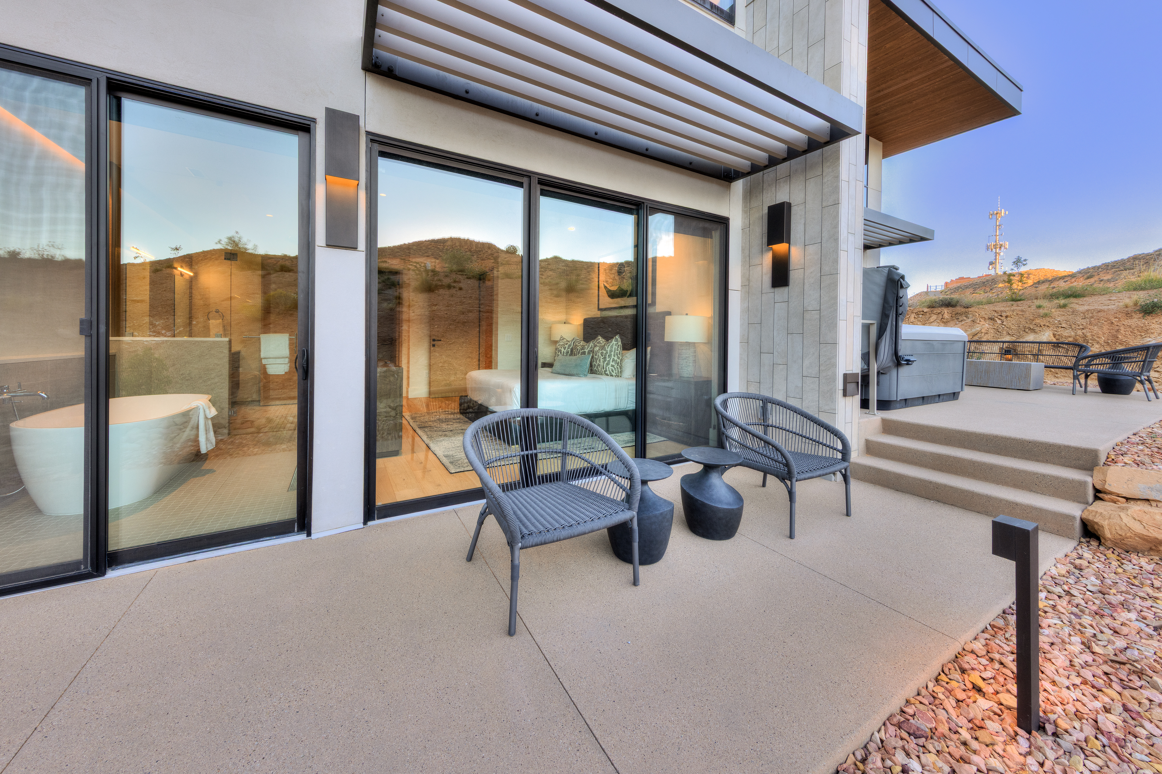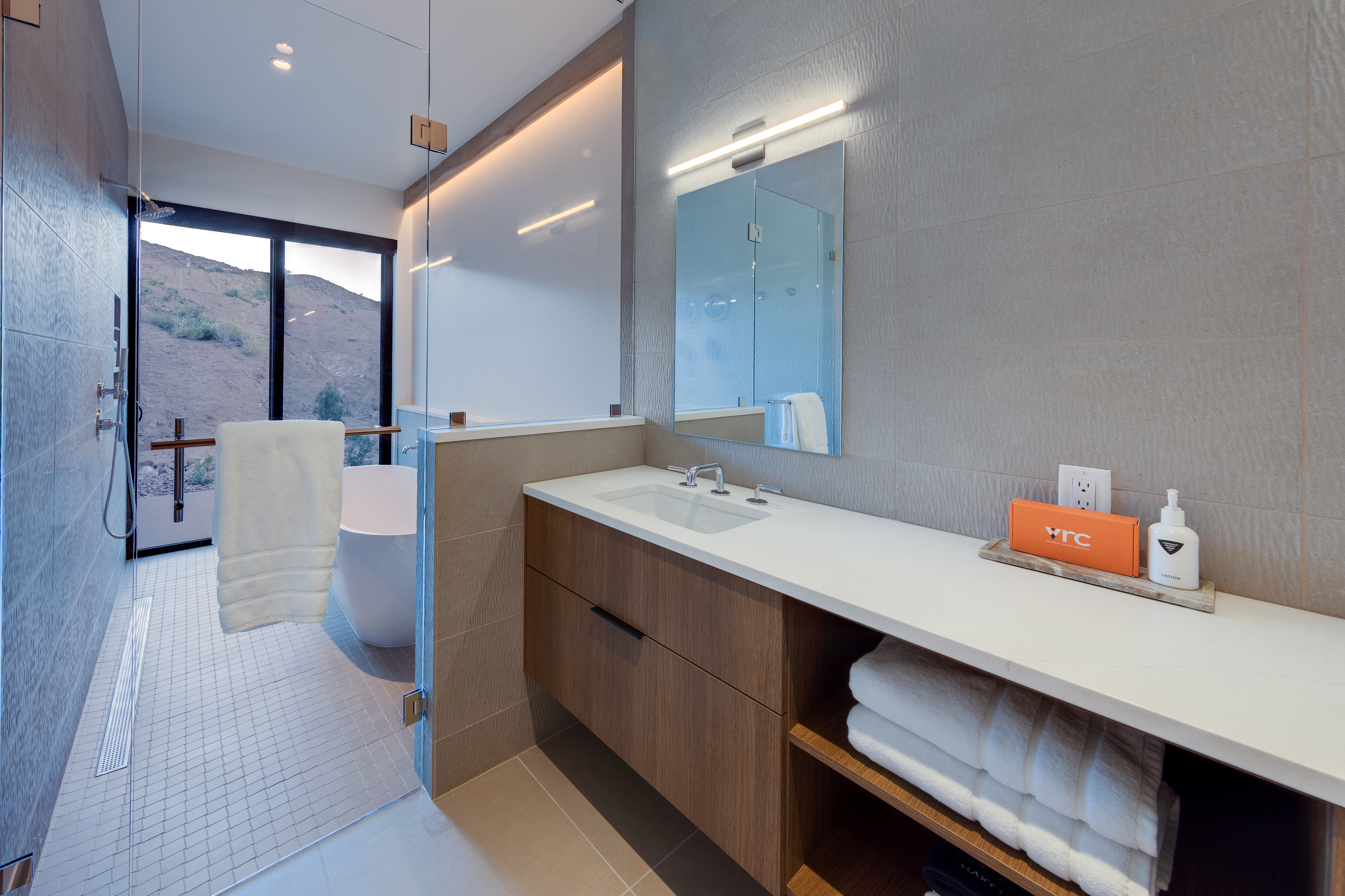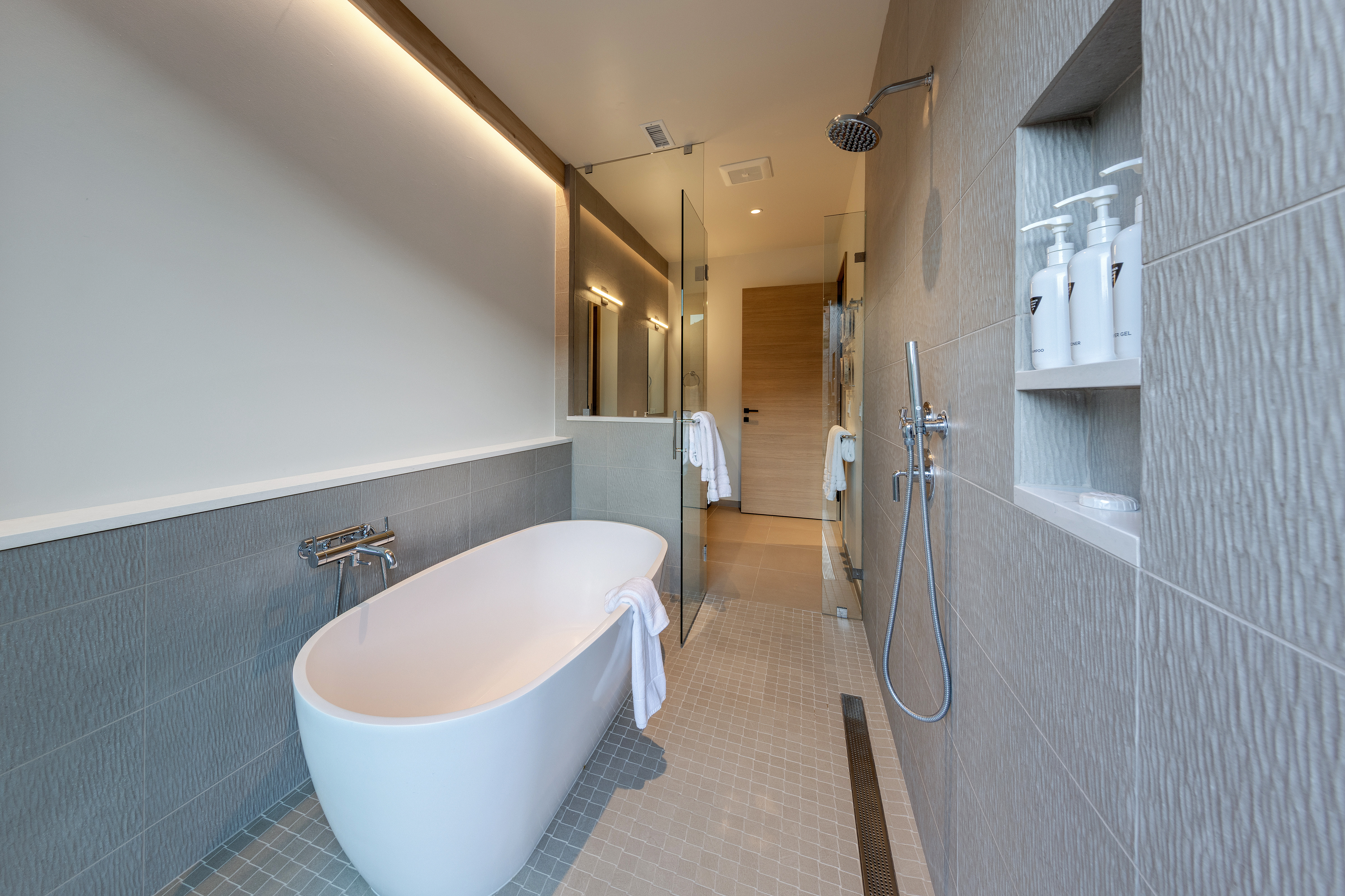• Spa-style bath with soaking tub + outdoor shower experience