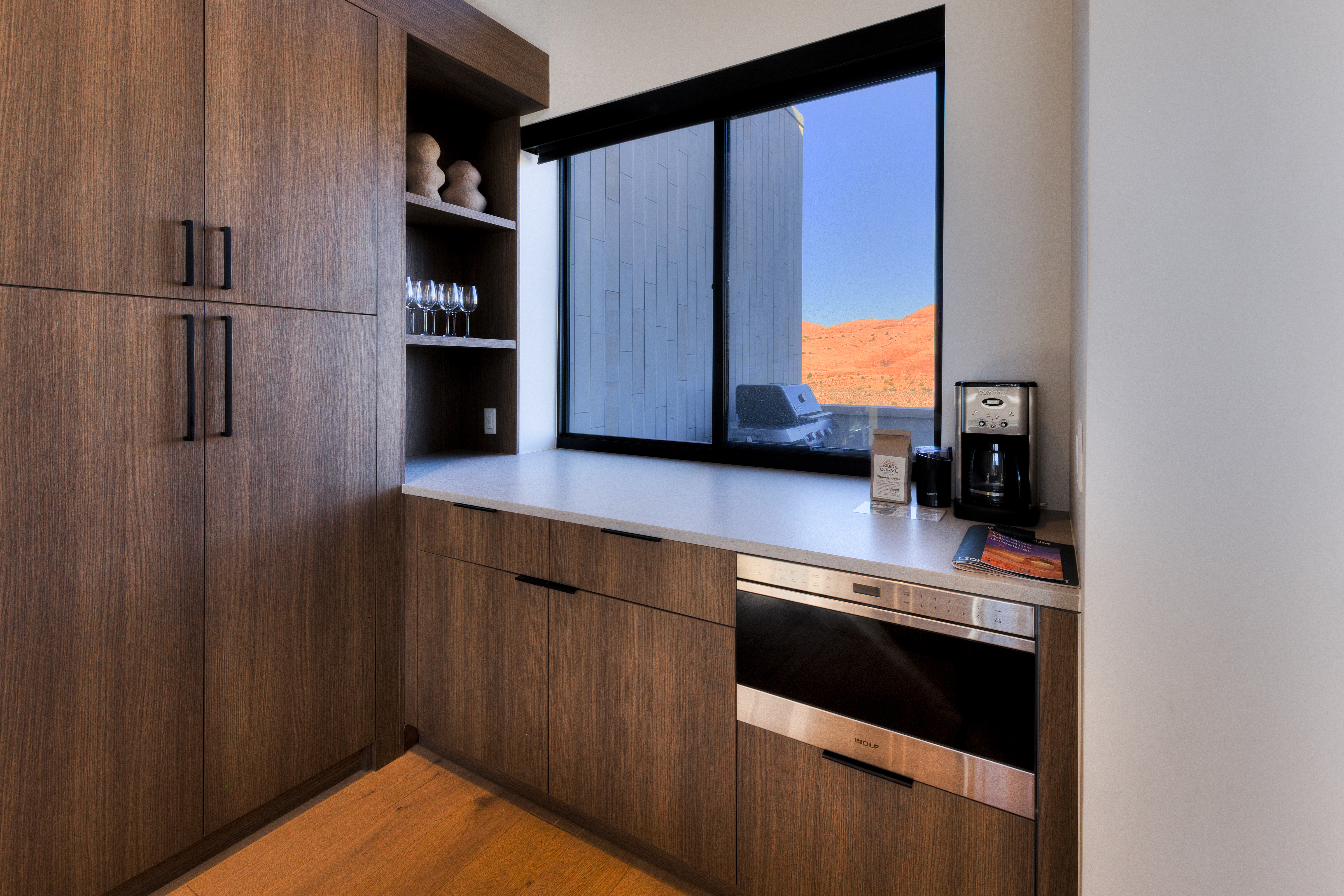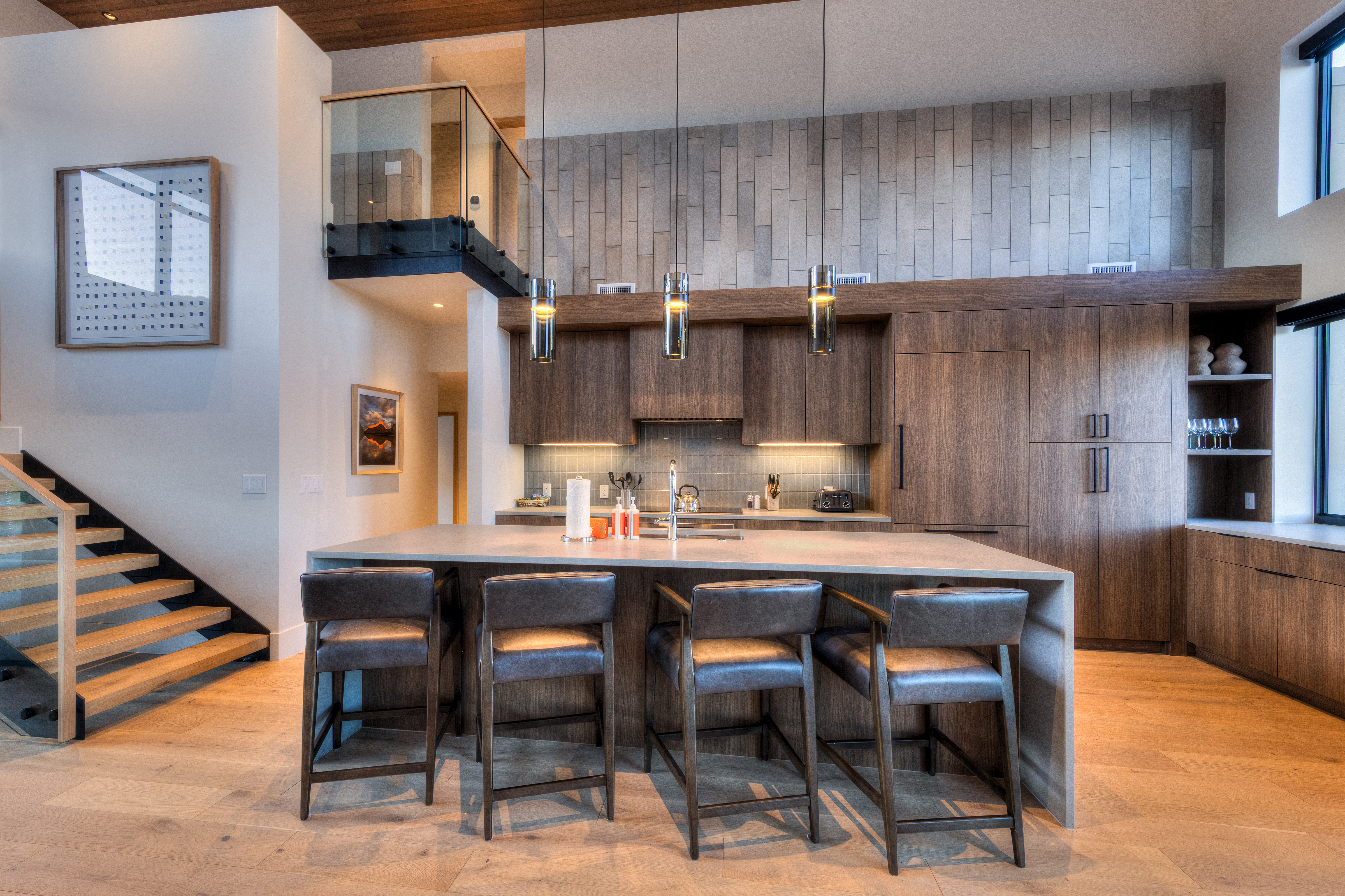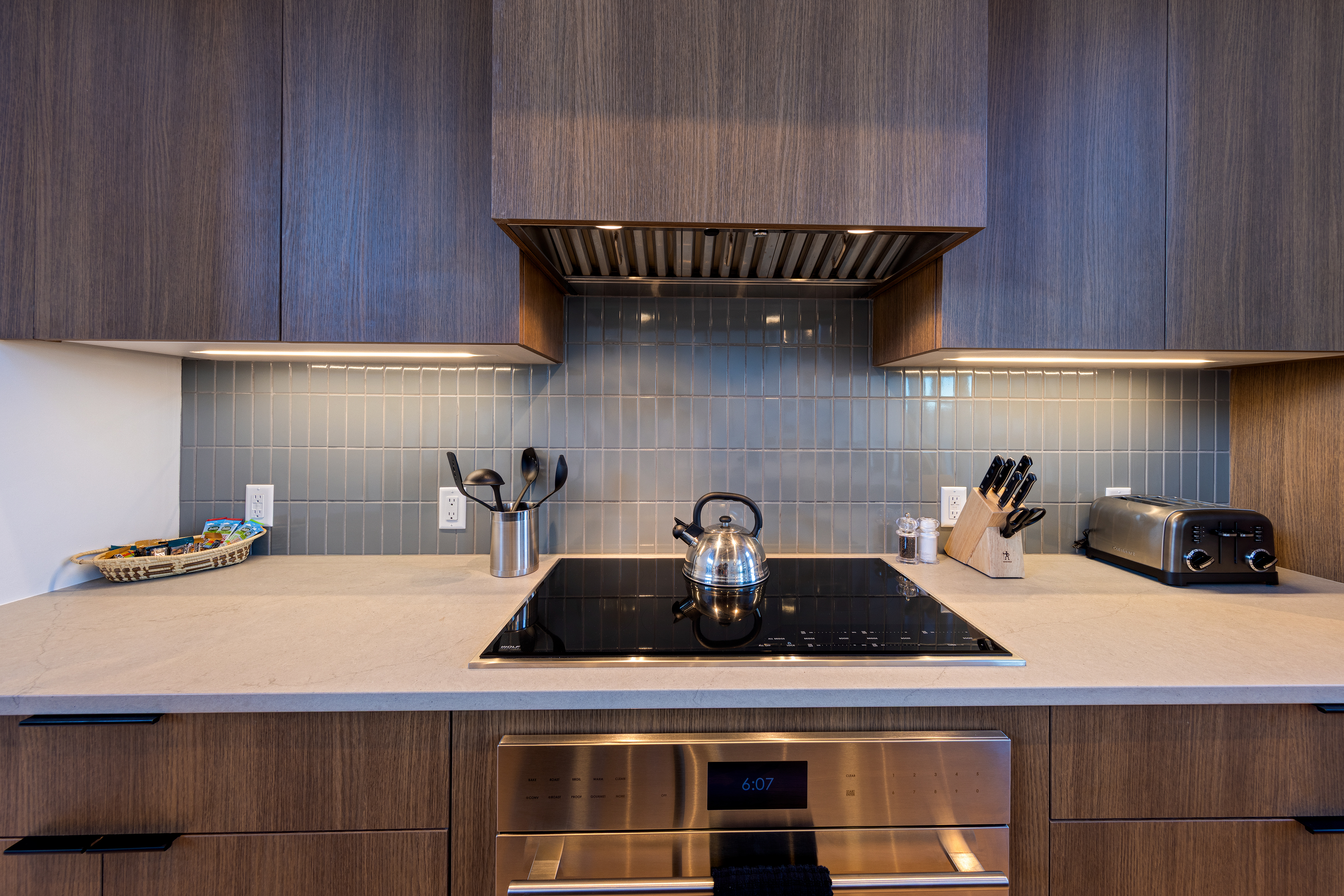 • Designer kitchen with Wolf induction cooktop + Sub-Zero fridge