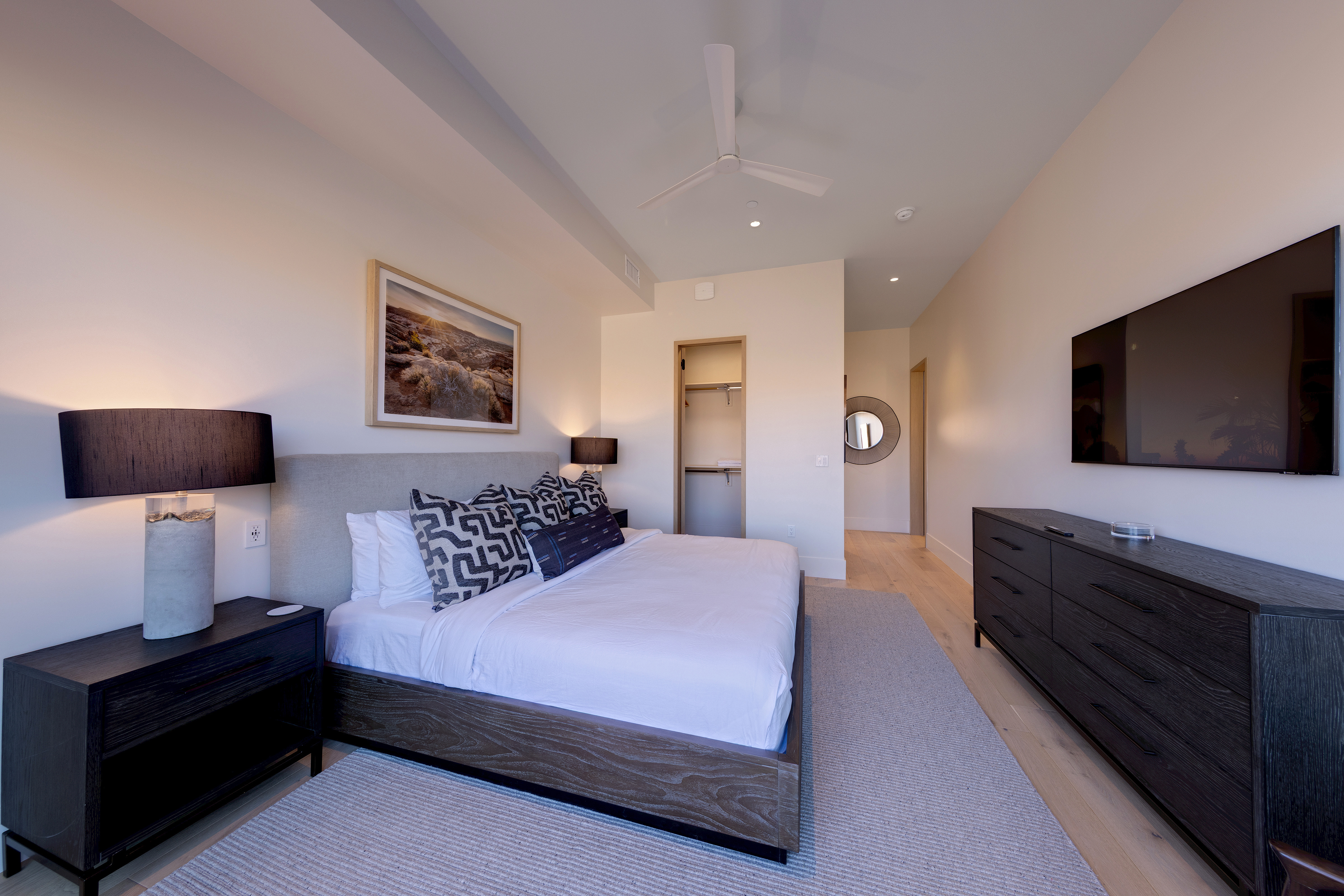 • Primary Suite 1: King Bed with ensuite bath (soaking tub + wet room)