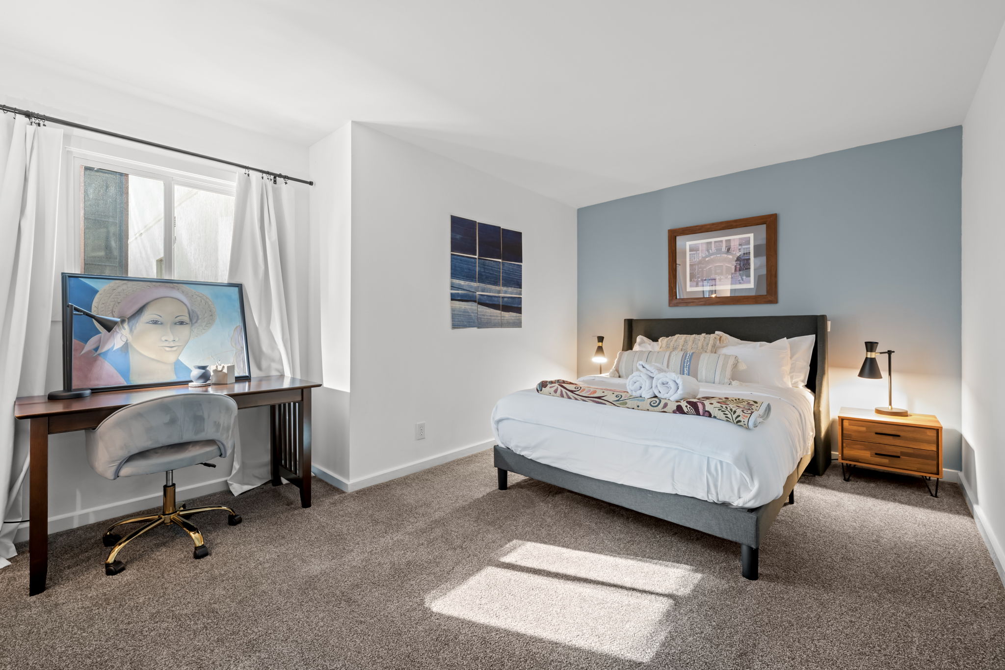 • Primary Bedroom – King bed, spacious closets, en-suite bath with double shower