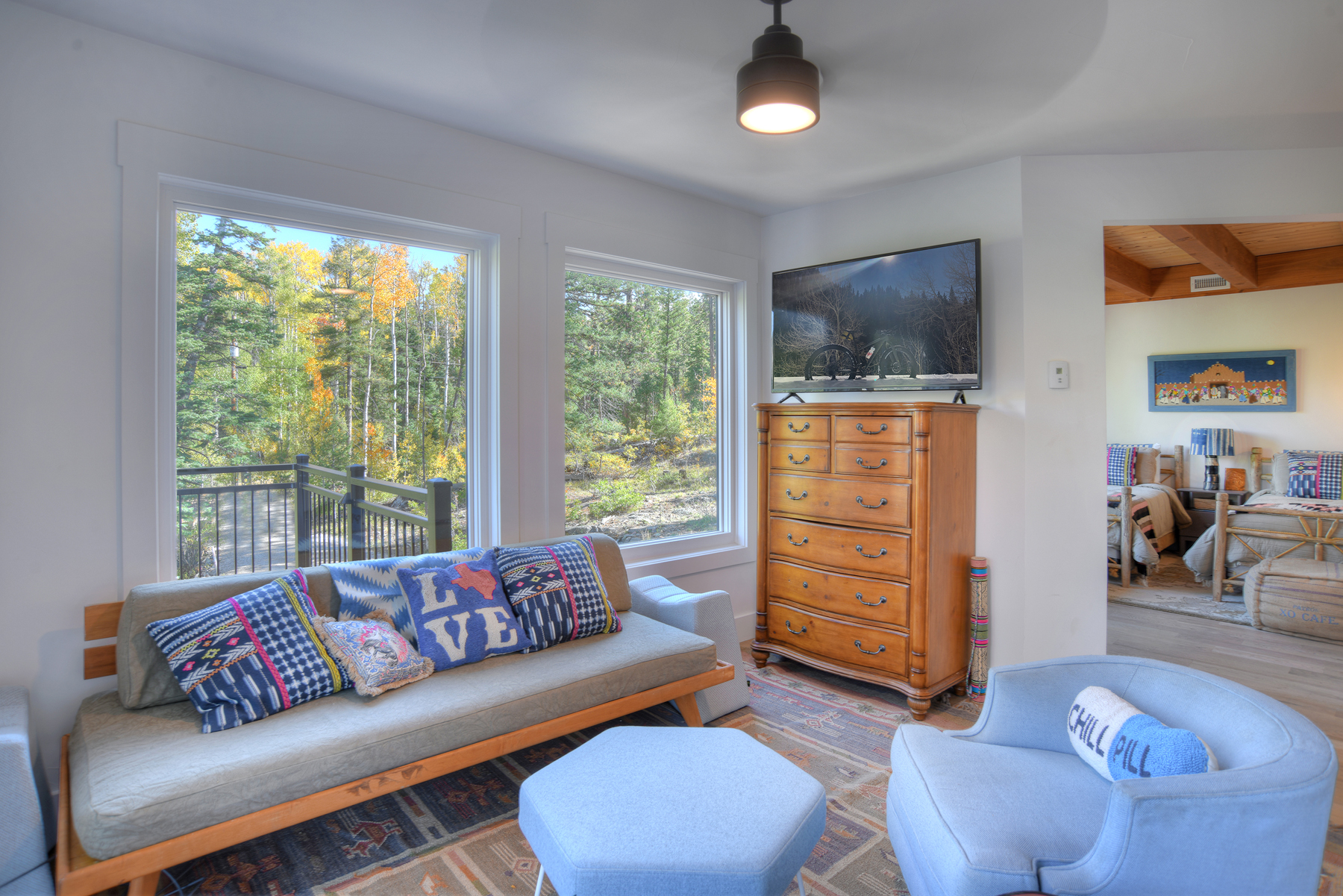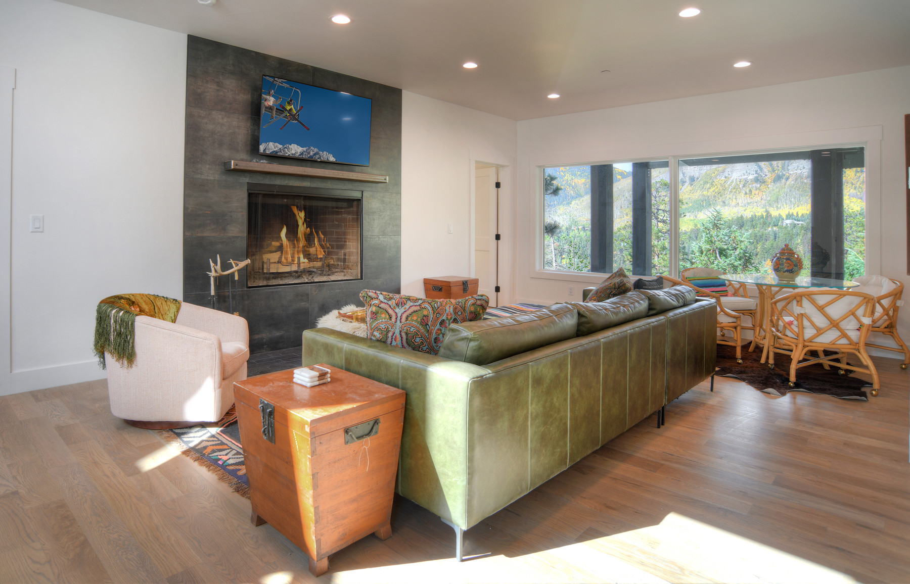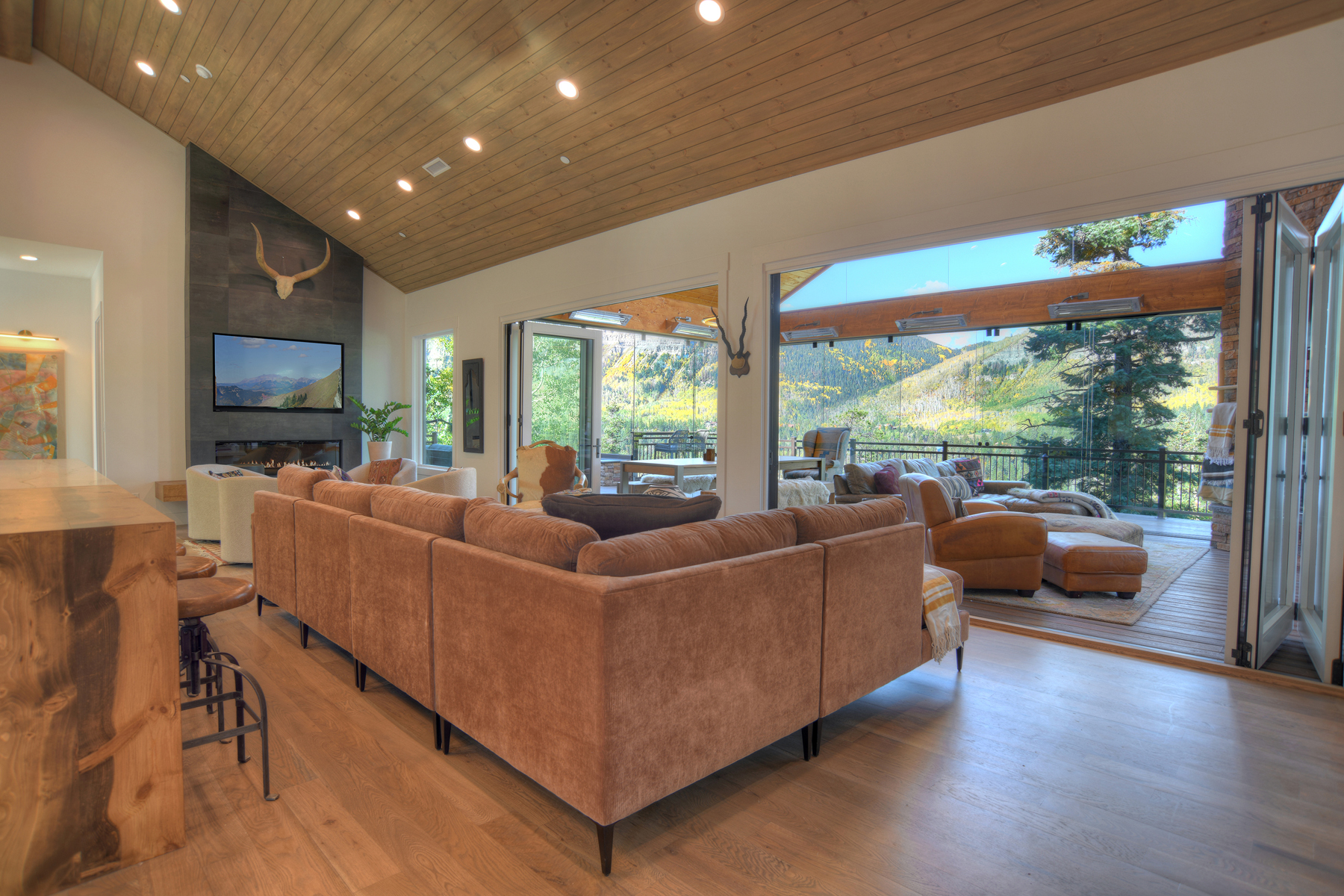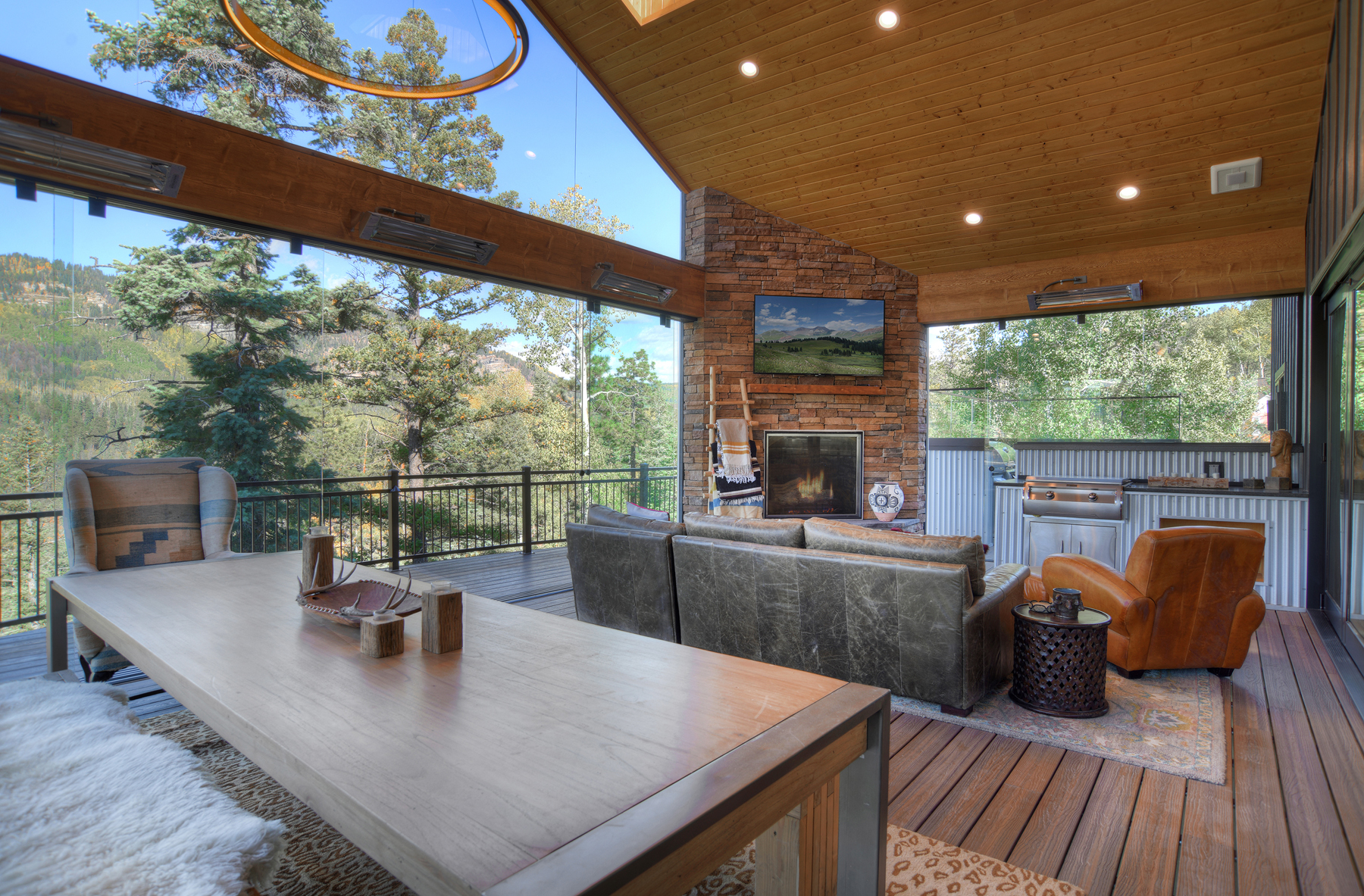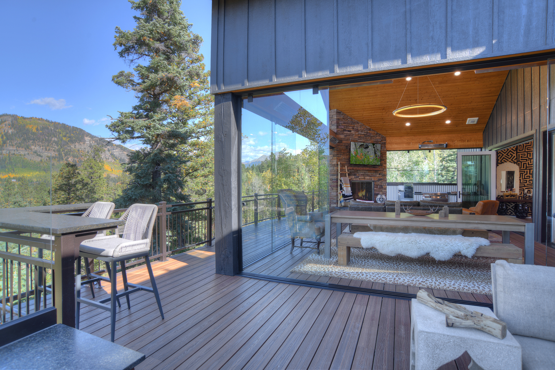 Just over 2 miles from Purgatory Ski Resort and 24 miles from historic downtown Durango, the residence offers privacy and seclusion and has been outfitted to be the ultimate vacation rental with a deck that includes a gas fireplace, TV, amazing views, super cool fire table, covered and uncovered seating, dining table, grill, fridge, electric charcoal rotisserie grill (seriously) and a gas griddle. Bi-fold doors in the main living space create a massive indoor/outdoor living space (just look at the photos - a written description doesn't do it justice).