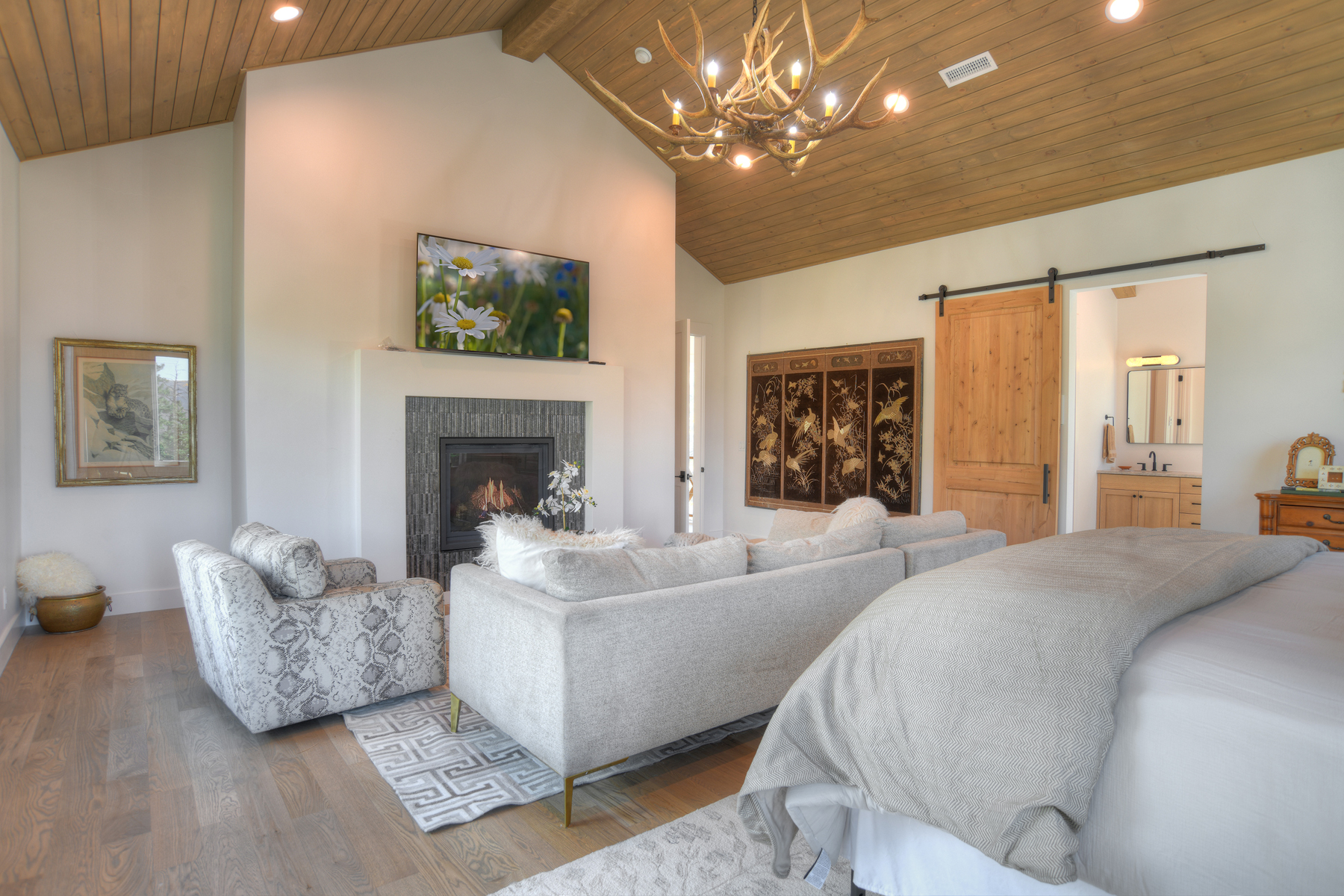 Master Bedroom - King Bed with TV, Gas Fireplace and Ensuite Bath (Top Floor)