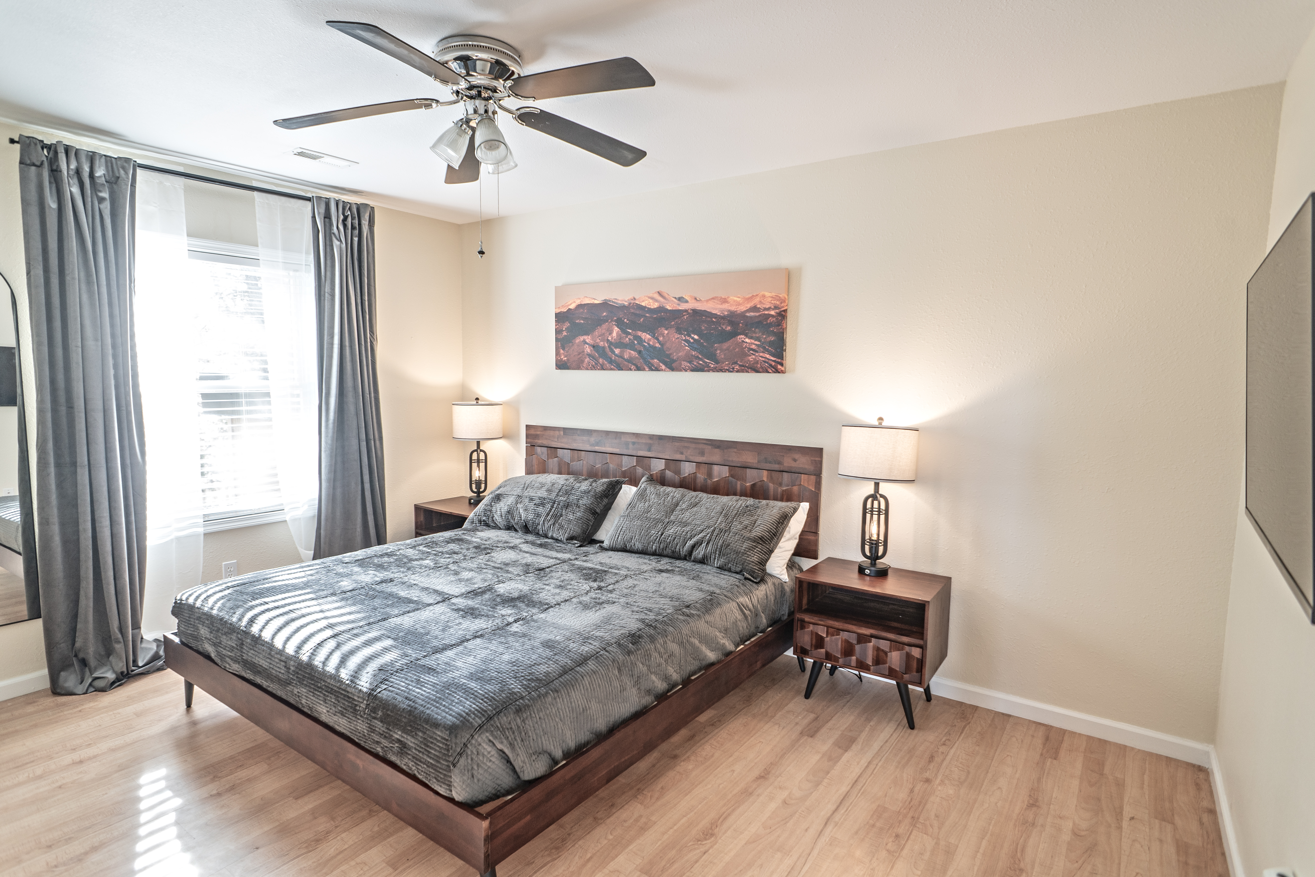 • Bedroom 1: King Bed with ensuite bathroom + Smart TV + Private Deck (Main Level)