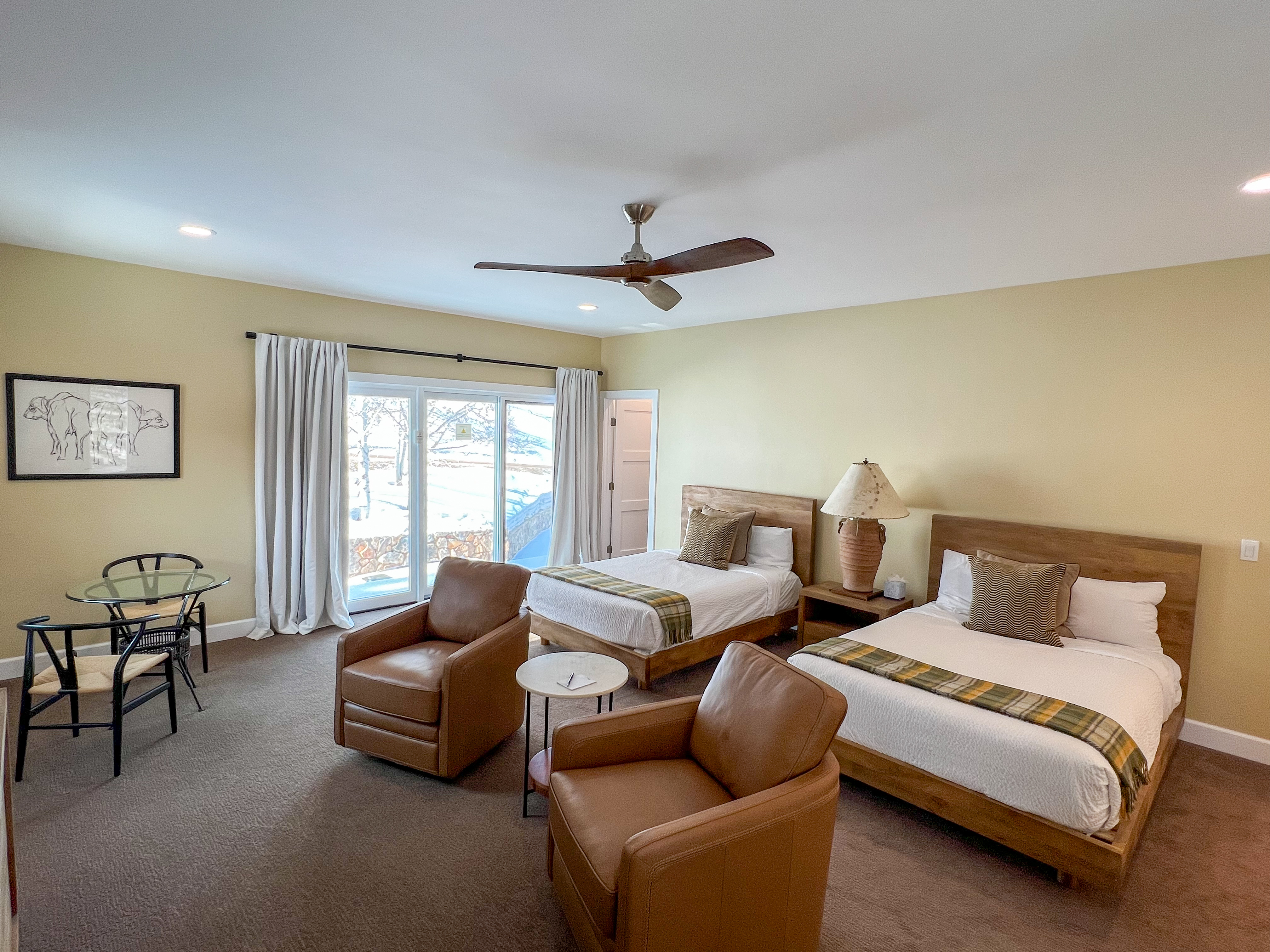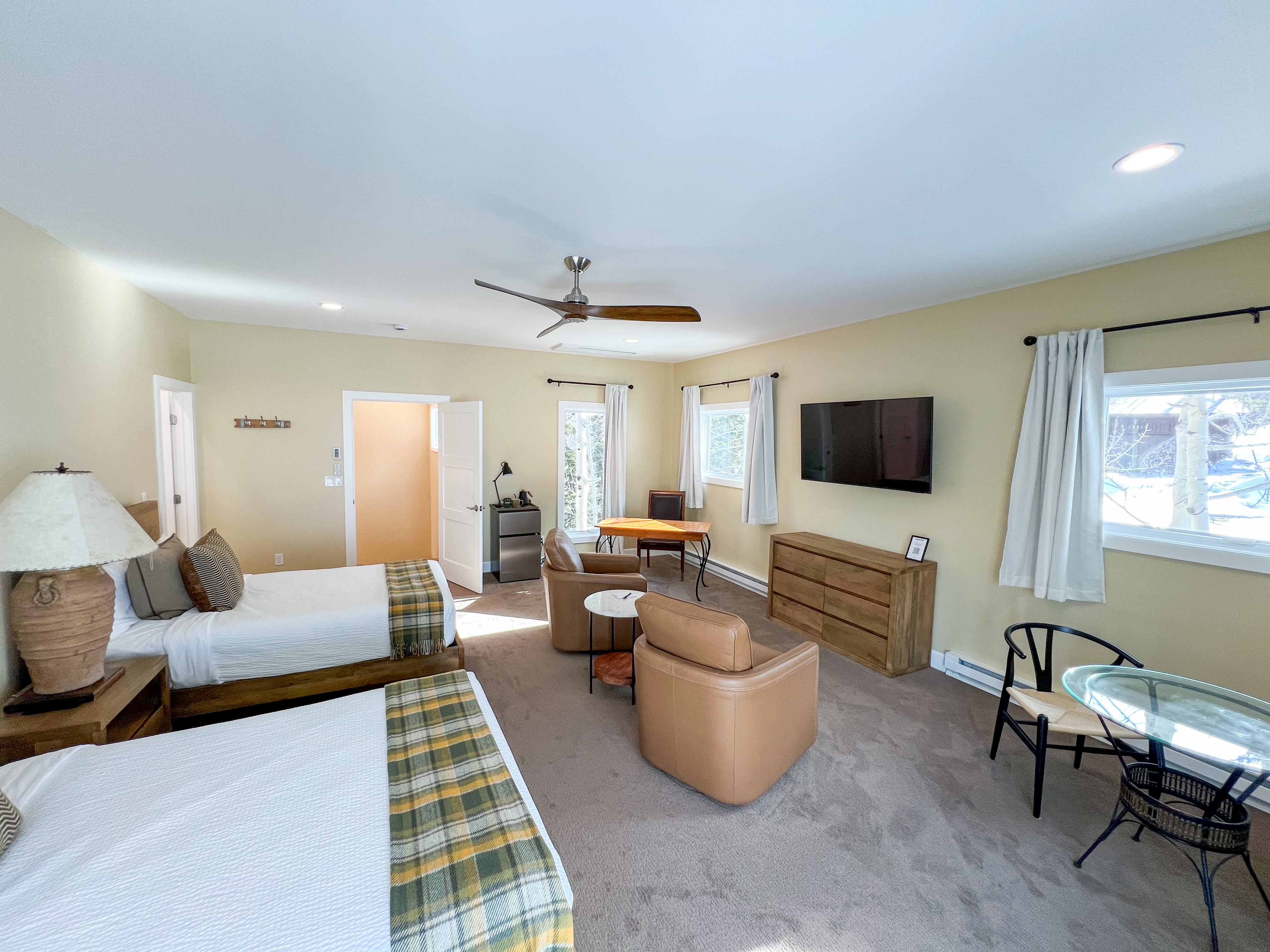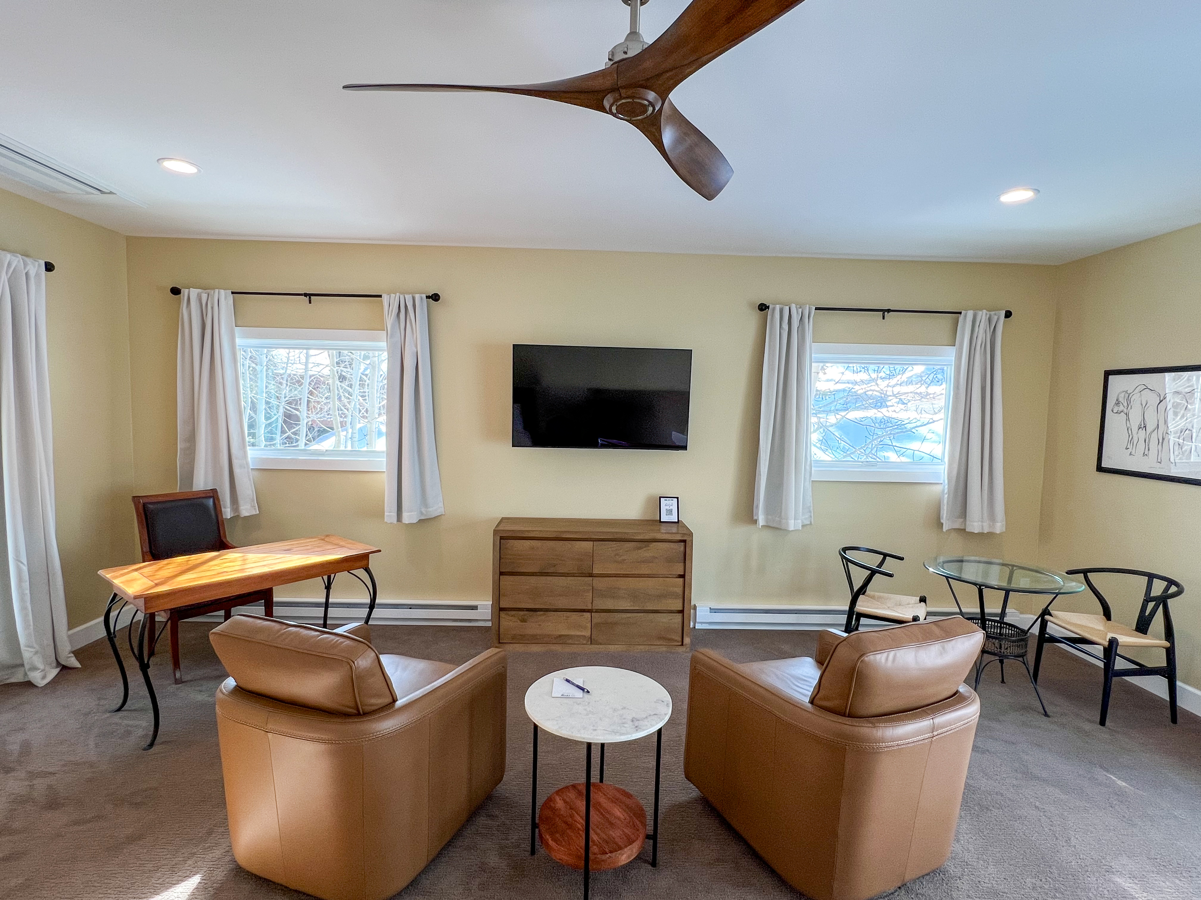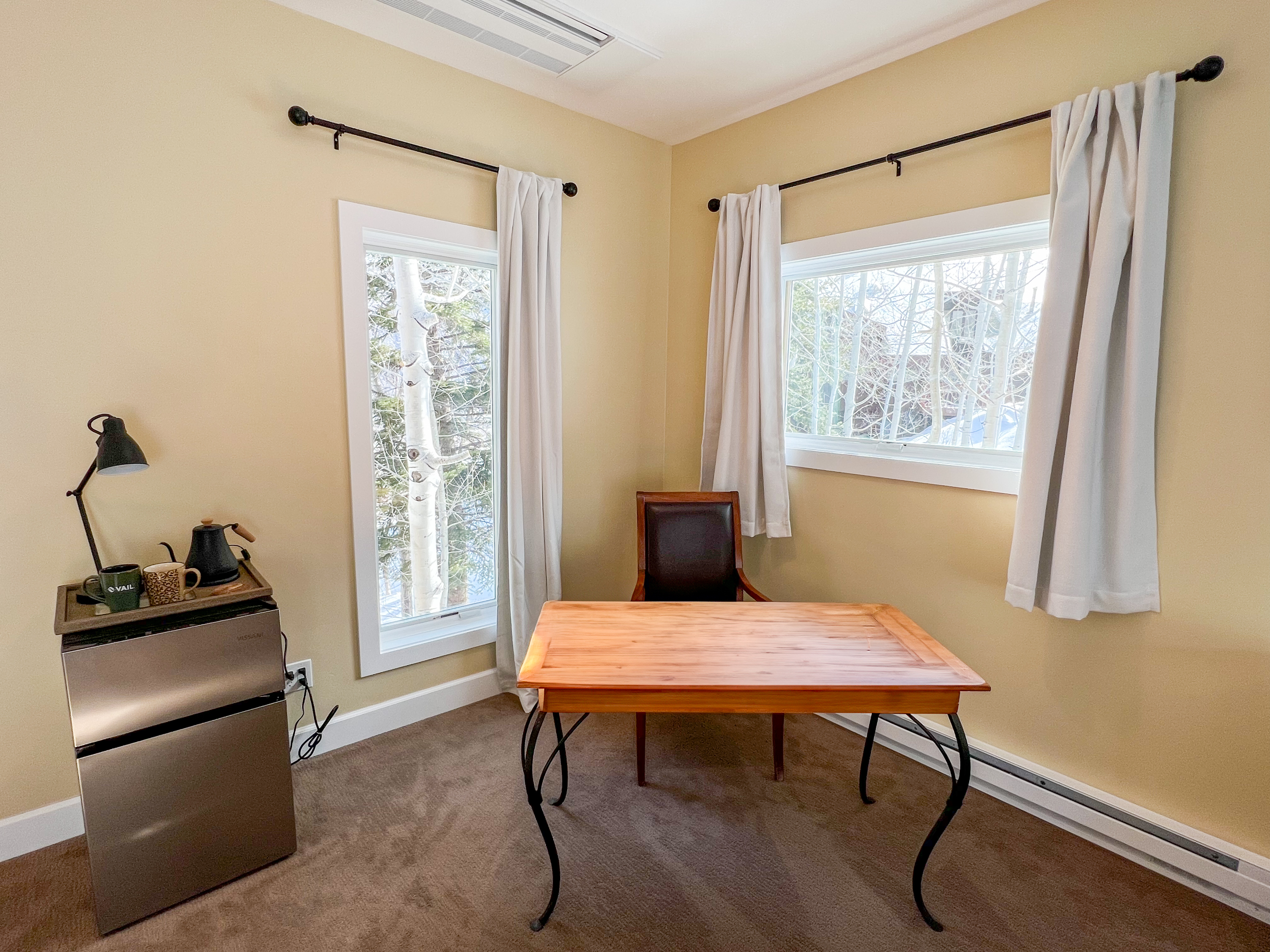 • Dedicated Workspace – a desk setup ideal for remote work with peaceful mountain views