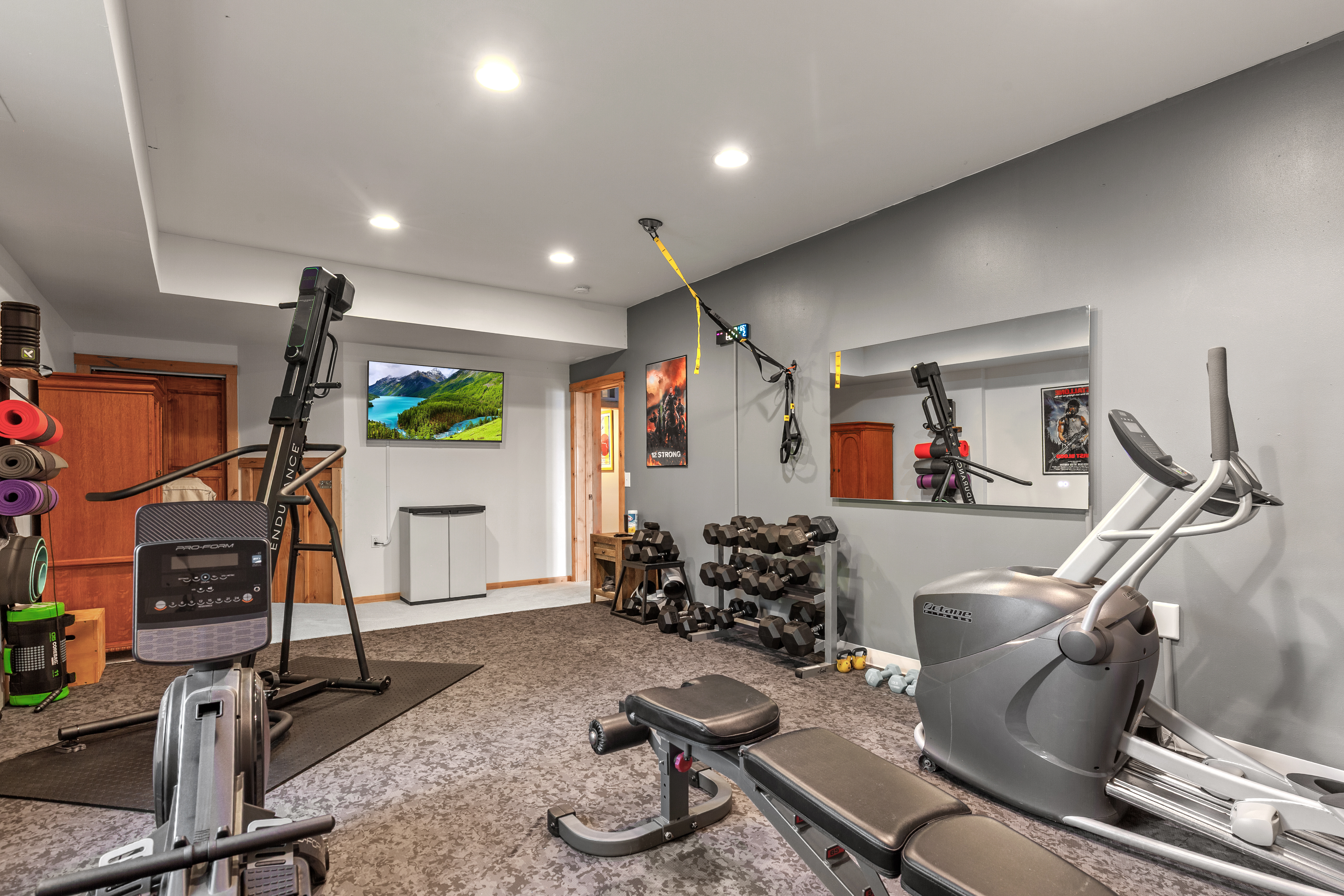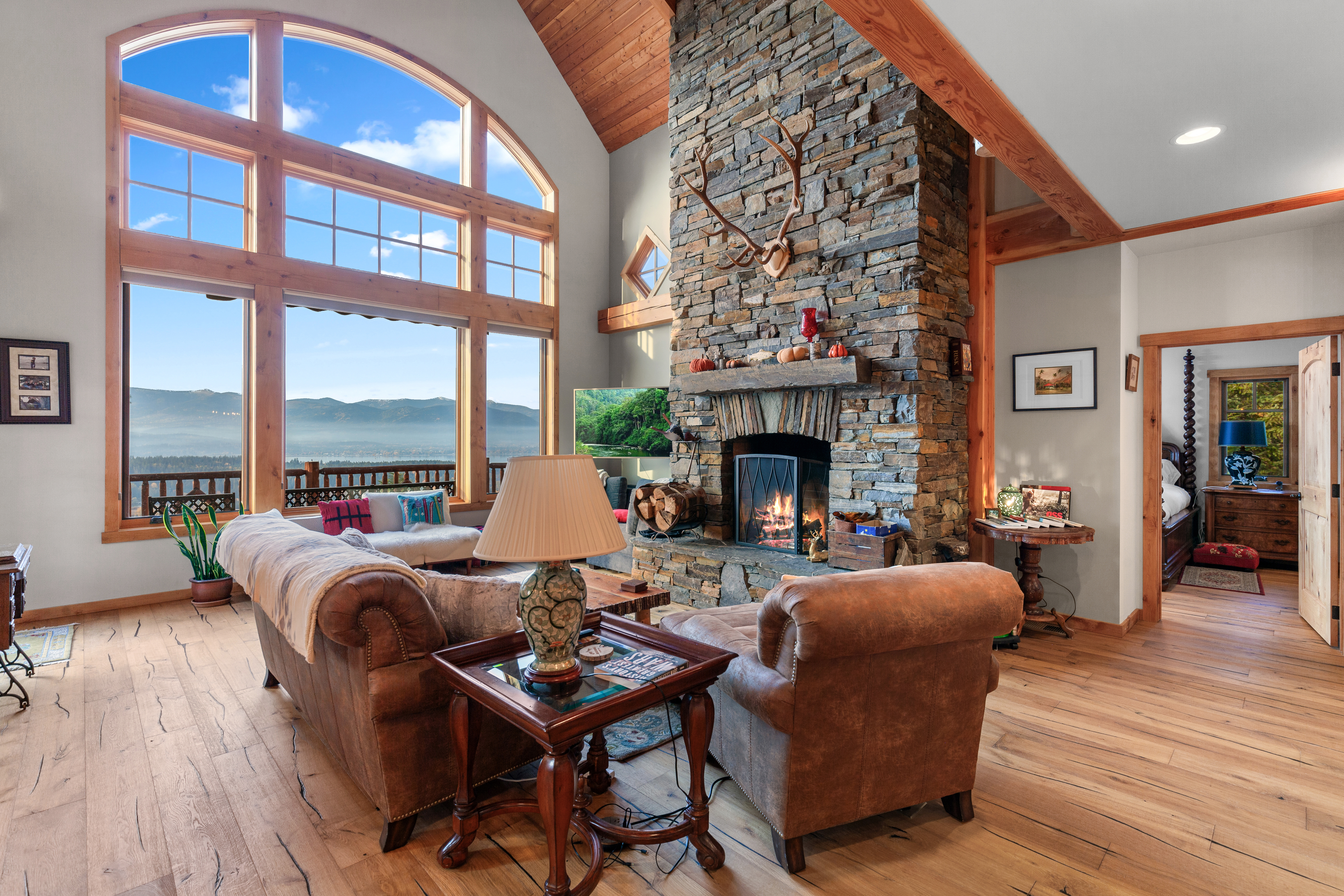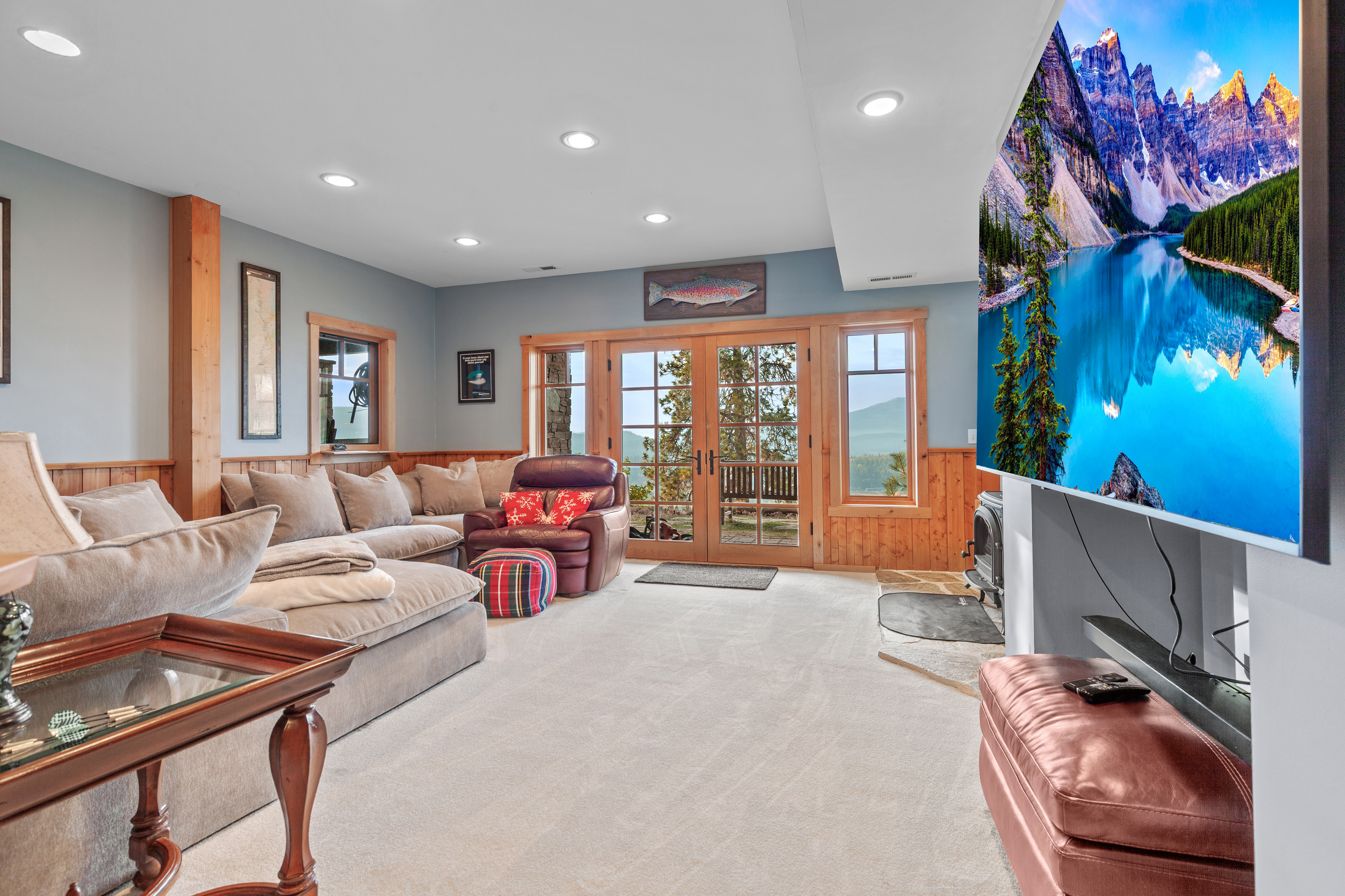 Step inside and be greeted by soaring ceilings with true post & beam architecture, a spacious open-concept kitchen, dining, and living area, and walls of windows that fill the space with natural light and frame the incredible lake and mountain views. The gourmet kitchen is fully equipped for any aspiring chef, perfect for entertaining whether you're preparing a family breakfast or hosting a holiday feast. After a day of adventure, relax by the signature lodge-style fireplace, soak in the outdoor hot tub, or enjoy a workout in the in-home gym. Downstairs, the family room offers a cozy entertainment space with an 86" Smart TV for movie nights or the big game, while the main floor deck invites you to savor your morning coffee, grill up your favorite meal, or unwind with a glass of wine surrounded by breathtaking scenery.