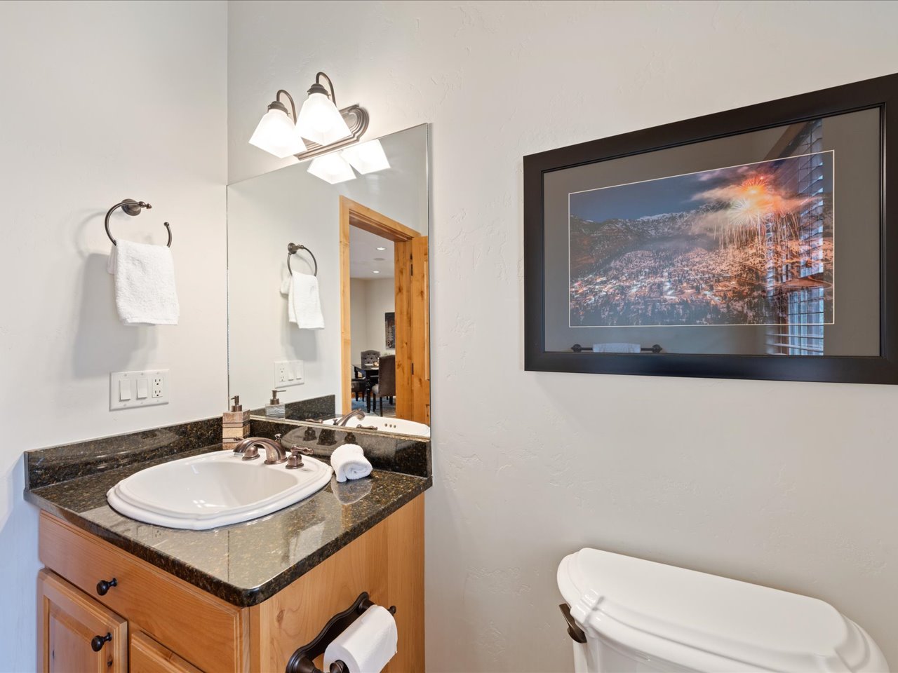 • Guests are welcome to park up to one vehicle in the garage and another regular sized vehicle in front of the garage. The driveway and garage are up against a rock wall and oversized vehicles may not fit. Overflow parking is available near the entrance of the Elkhorn Townhome complex.