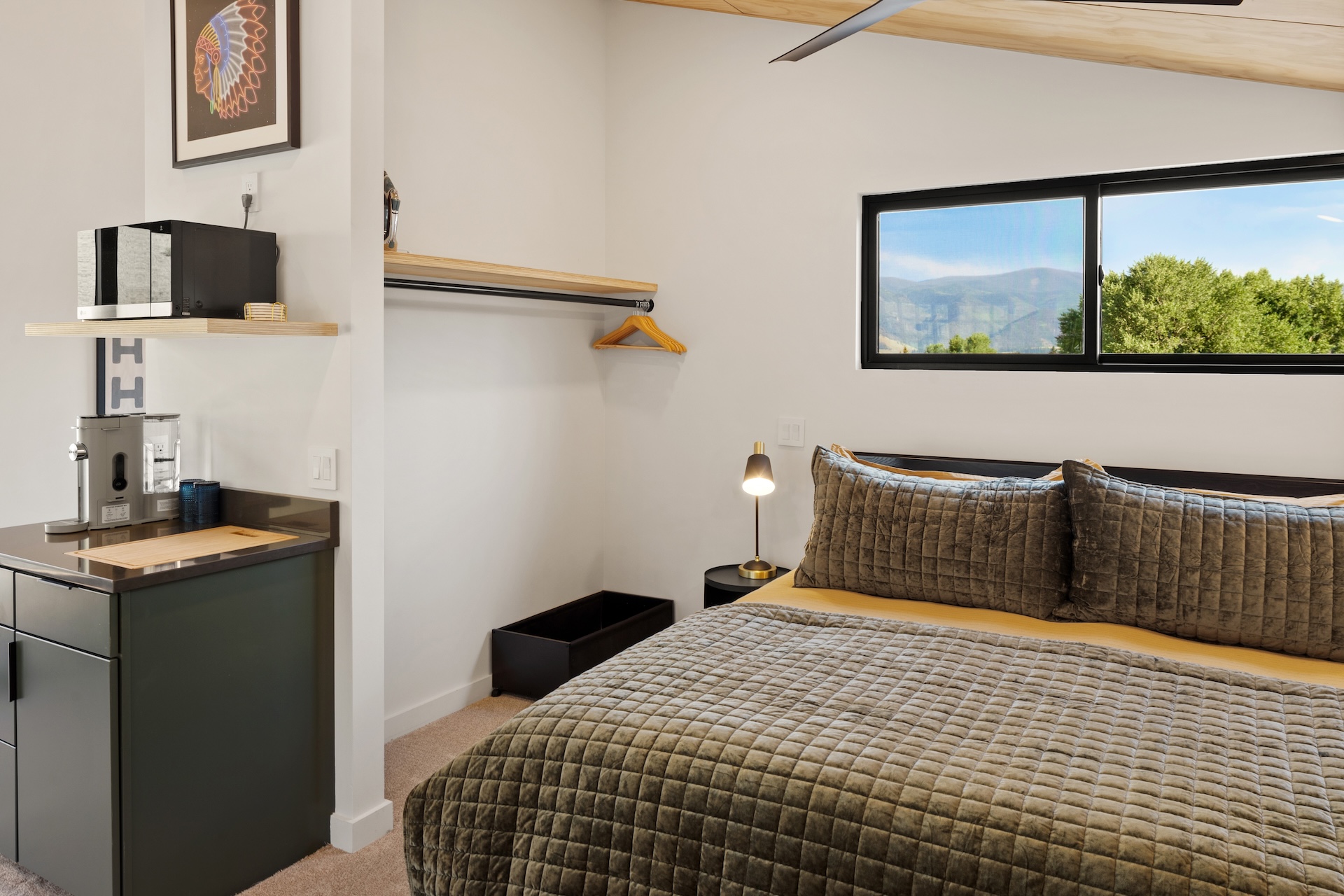 • King bed in an open studio layout